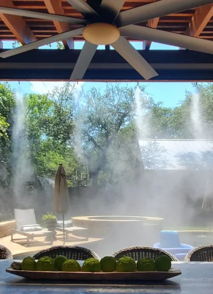 Misting Systems – Reduces outdoor temperatures by 10-15°C, perfect for gardens, patios, and outdoor restaurants, Evaporative Cooling – Ideal for open-air spaces and commercial venues, Patio & Terrace Cooling Fans – Enhances comfort for outdoor seating areas